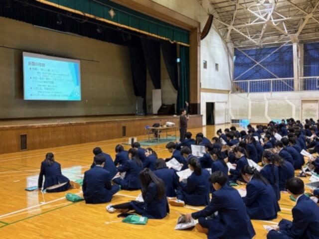 1年生の「総合的な探究の時間」では、地域課題や社会課題について、自分の考えをまとめて発表することを目標としています。本日の講演会を生かし、少しでも上手に文章をまとめることができればいいですね。